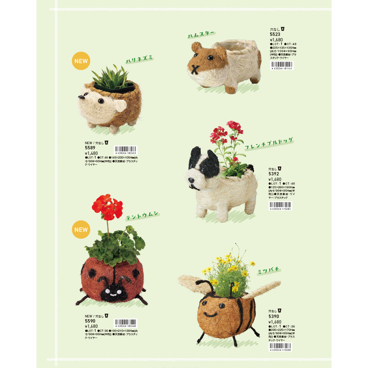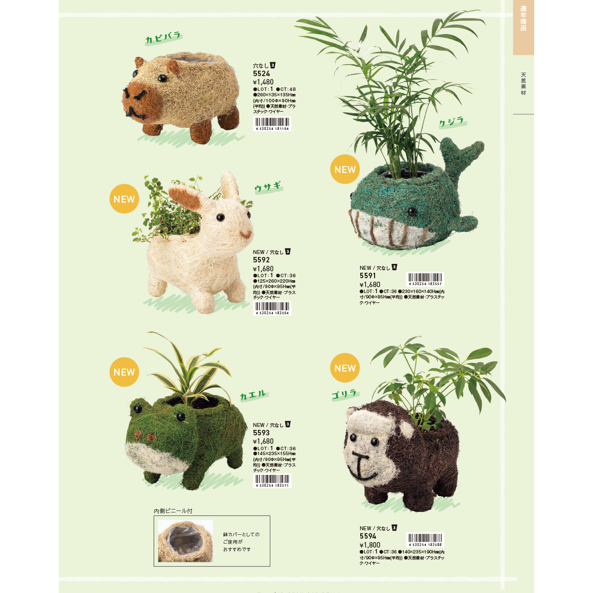 | サイズ | 【5591 ひだまりアニマルポット クジラ】230×160×140Hmm(内寸:90Φ×95Hmm(平均)) 【5592 ひだまりアニマルポット ウサギ】125×260×220Hmm(内寸:90Φ×95Hmm(平均)) 【5593 ひだまりアニマルポット カエル】145×235×155Hmm(内寸:90Φ×95Hmm(平均)) 【5594 ひだまりアニマルポット ゴリラ】140×235×190Hmm(内寸:90Φ×95Hmm(平均)) 【5589 ひだまりアニマルポット ハリネズミ】145×200×105Hmm(内寸:90Φ×95Hmm(平均)) 【5590 ひだまりアニマルポット テントウムシ】190×210×130Hmm(内寸:90Φ×95Hmm(平均)) 【5587 ひだまりアニマルポット フクロウ】170×160×135Hmm(内寸:90Φ×95Hmm(平均)) 【5588 ひだまりアニマルポット シマエナガ】230×220×105Hmm(内寸:90Φ×95Hmm(平均)) |