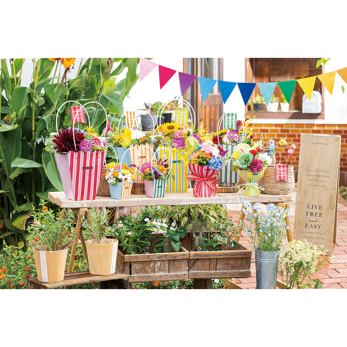 【ギフトやラッピングに】マルシェバッグ フラワーアレンジ ギフトバッグ 母の日 プレゼント