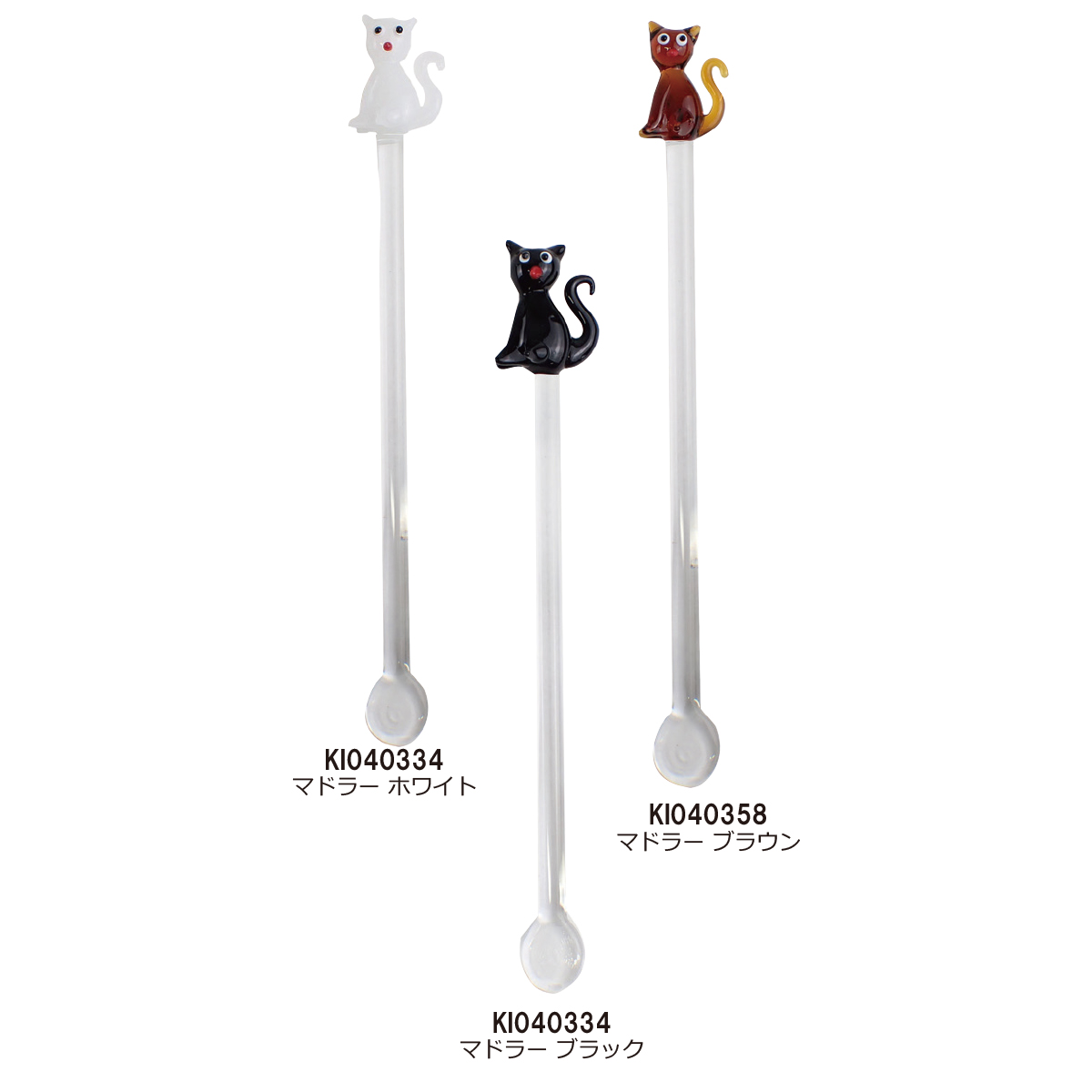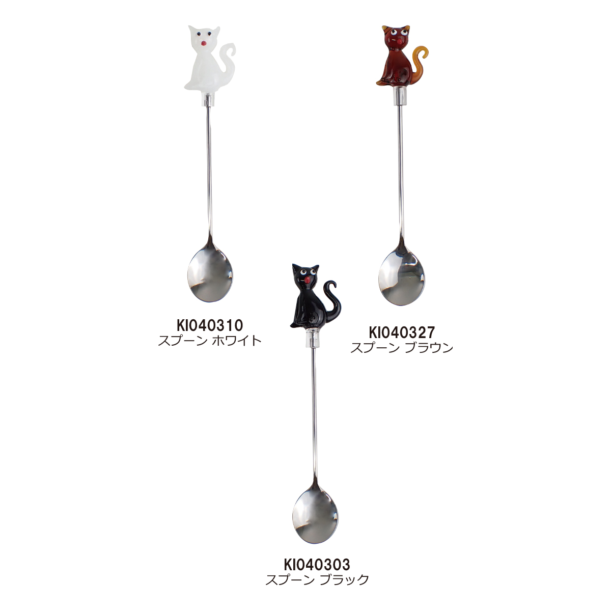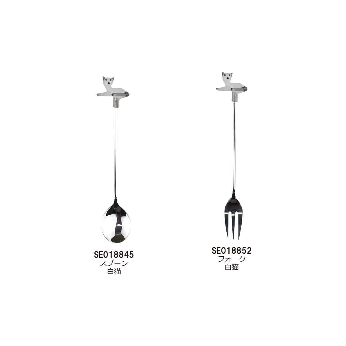 【2月上旬入荷】ガラスモチーフカトラリー スプーン キャット白猫 黒猫 フォーク マドラー