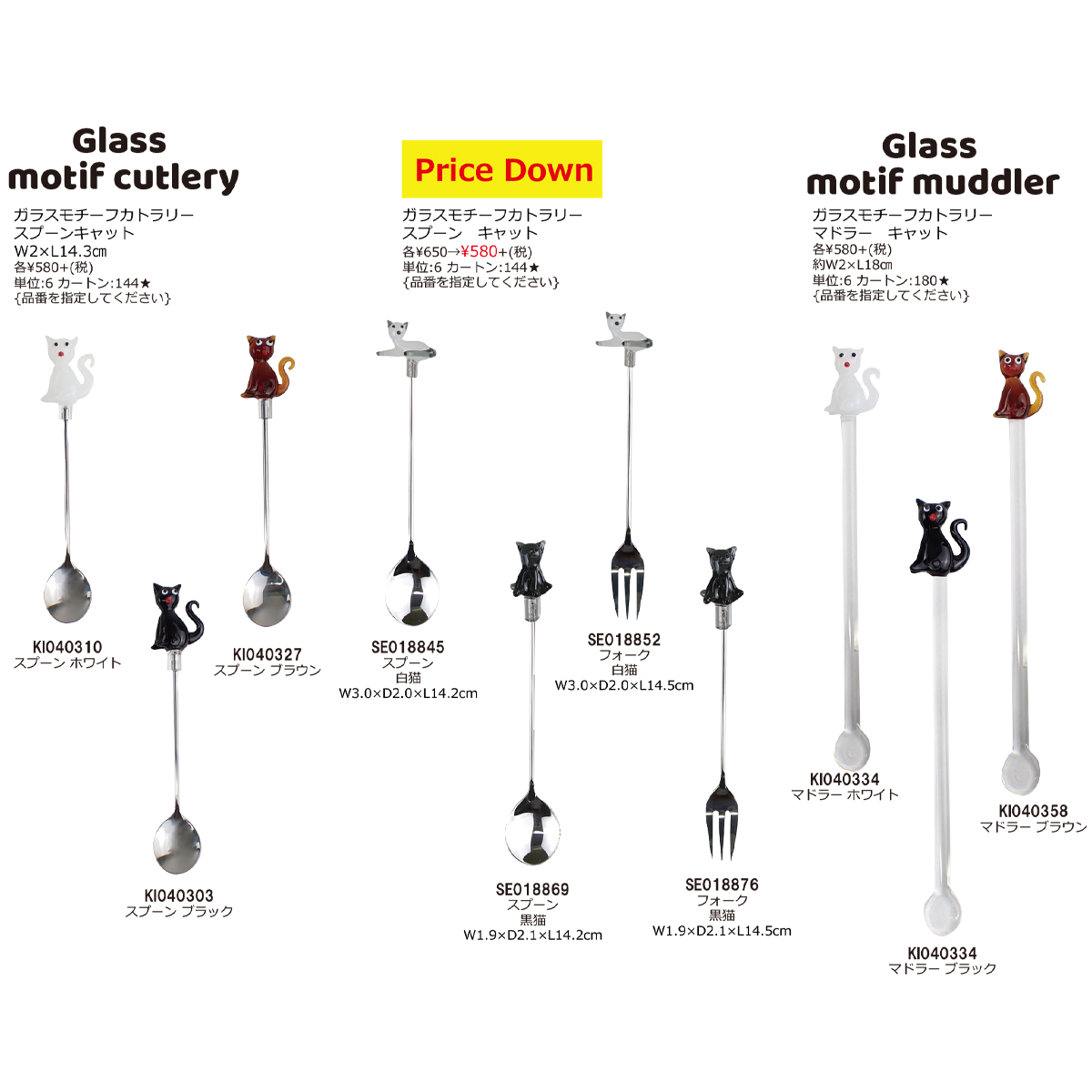 キャットデザインがかわいい!ガラス製のカトラリーシリーズです。