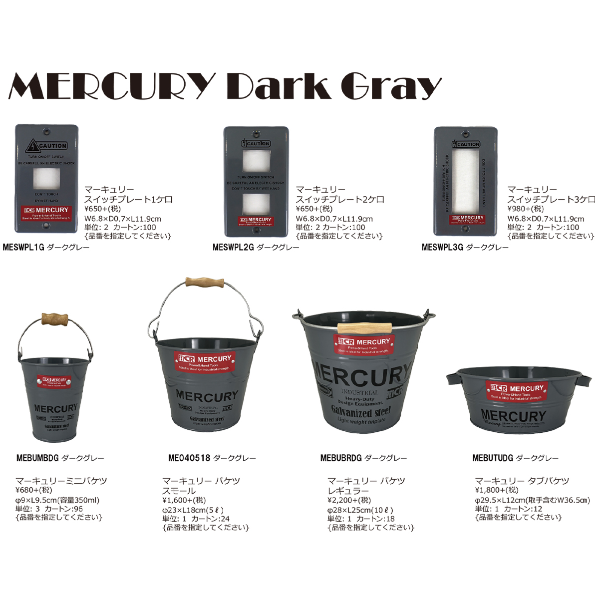 【2月上旬入荷】マーキュリー バケツ&スイッチプレート コンセントカバー ダークグレー
