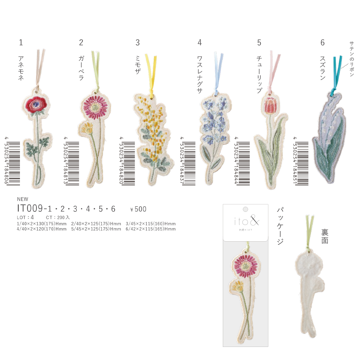 【ito&】刺繍ブックマーク しおり 栞 ボタニカル 花 植物