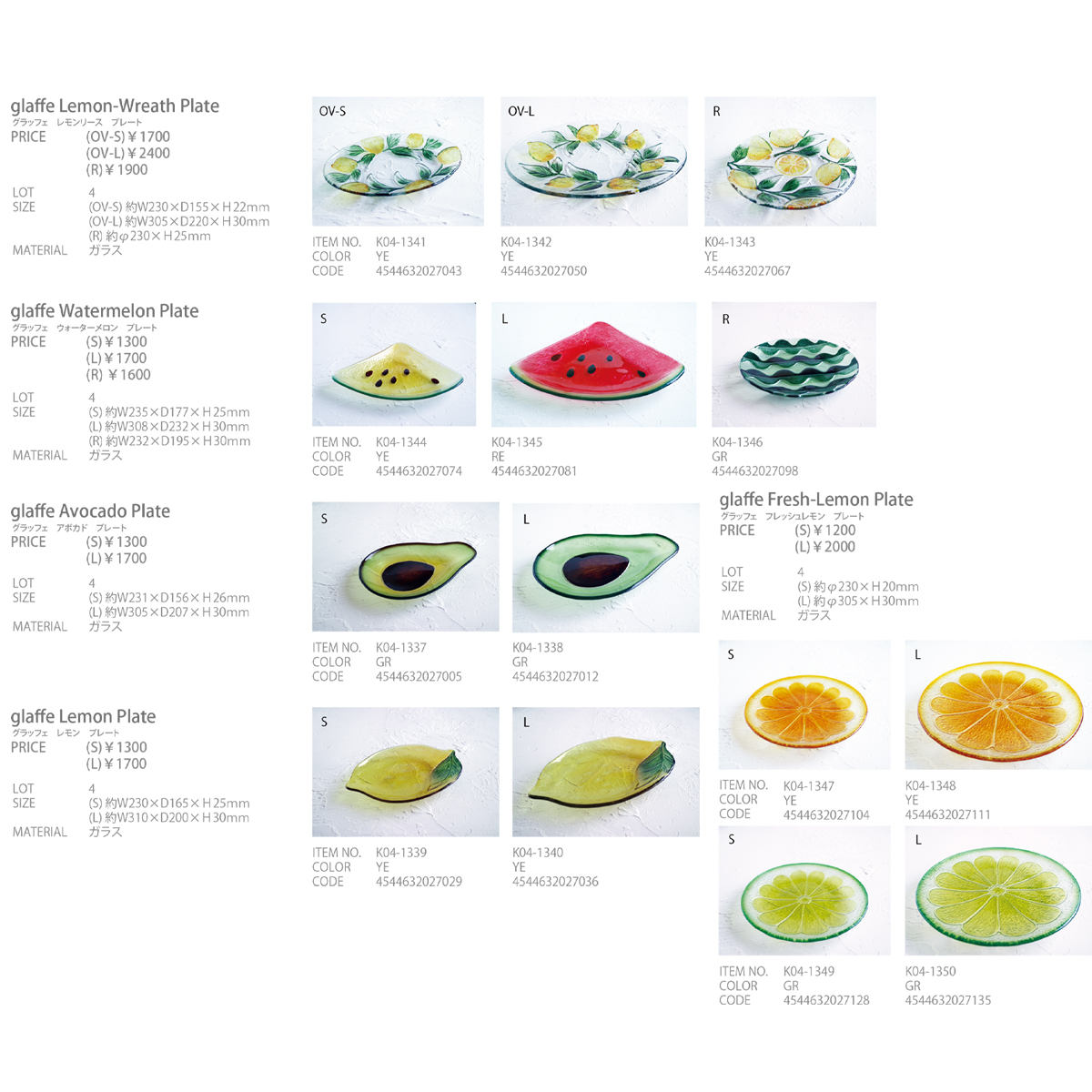 | サイズ | レモンリースプレート (OV-S) 約W230×D155×H22mm (OV-L) 約W305×D220×H30mm (R) 約φ230×H25mm ウォーターメロンプレート (S) 約W235×D177×H25mm (L) 約W308×D232×H30mm (R) 約W232×D195×H30mm アボカドプレート (S) 約W231×D156×H26mm (L) 約W305×D207×H30mm レモンプレート (S) 約W230×D165×H25mm (L) 約W310×D200×H30mm フレッシュレモンプレート (S) 約φ230×H20mm (L) 約φ305×H30mm |