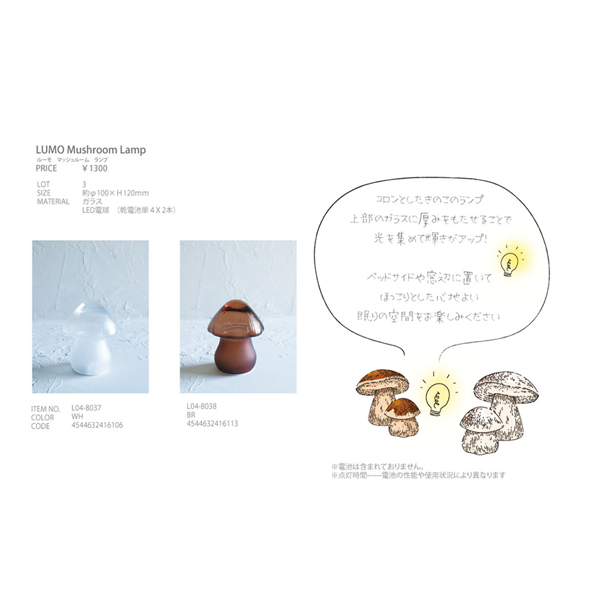 《予約:3月下旬》ルーモ マッシュルームランプ&ガラスシェードランプ 照明
