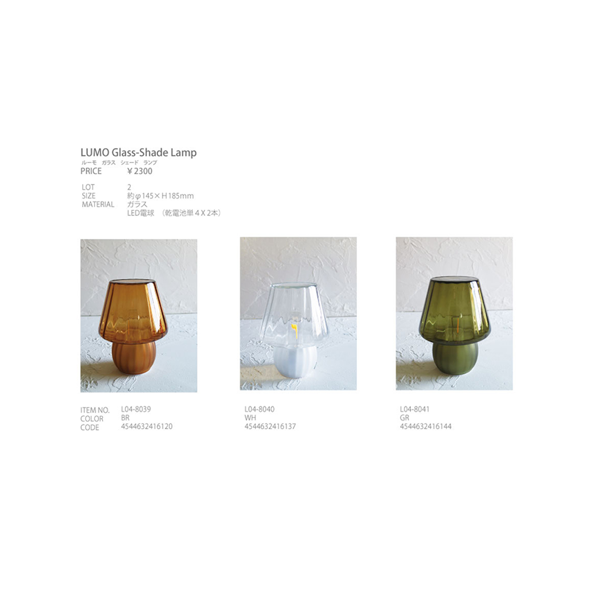 | 素材 | ガラス/LED電球(乾電池単4×2本) |