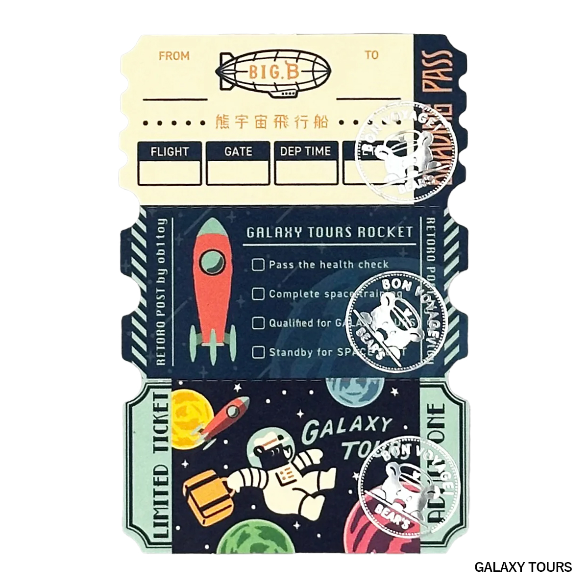 大地をめぐる「EARTH TOURS」、星々へ向かう「GALAXY TOURS」という、2つの異なる世界観を鮮やかに箔押しで彩ります。