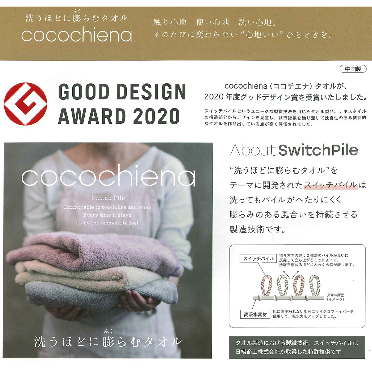 cocochiena(ココチエナ)タオルが、2020年度グッドデザイン賞を受賞いたしました。