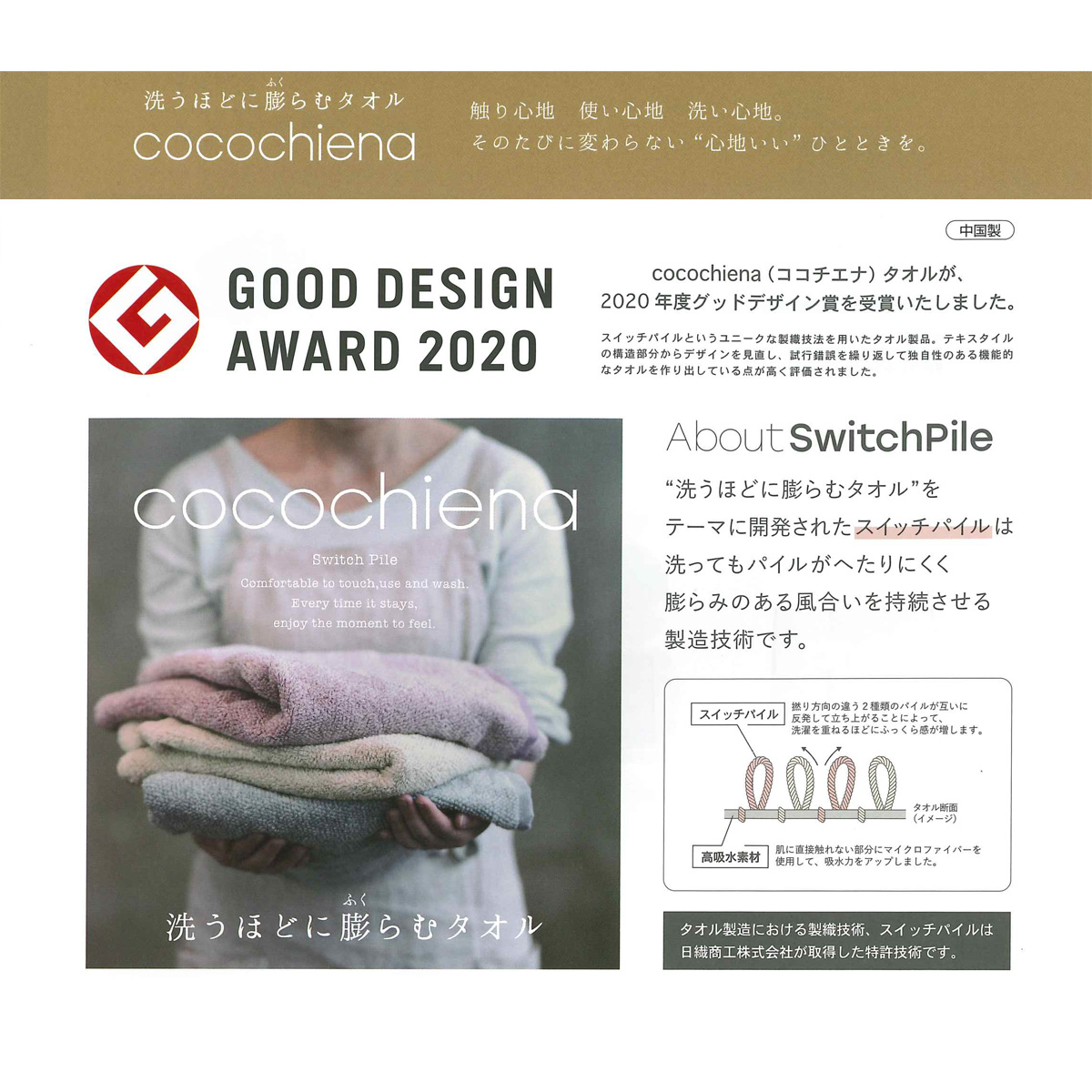 cocochiena(ココチエナ)タオルが、2020年度グッドデザイン賞を受賞いたしました。