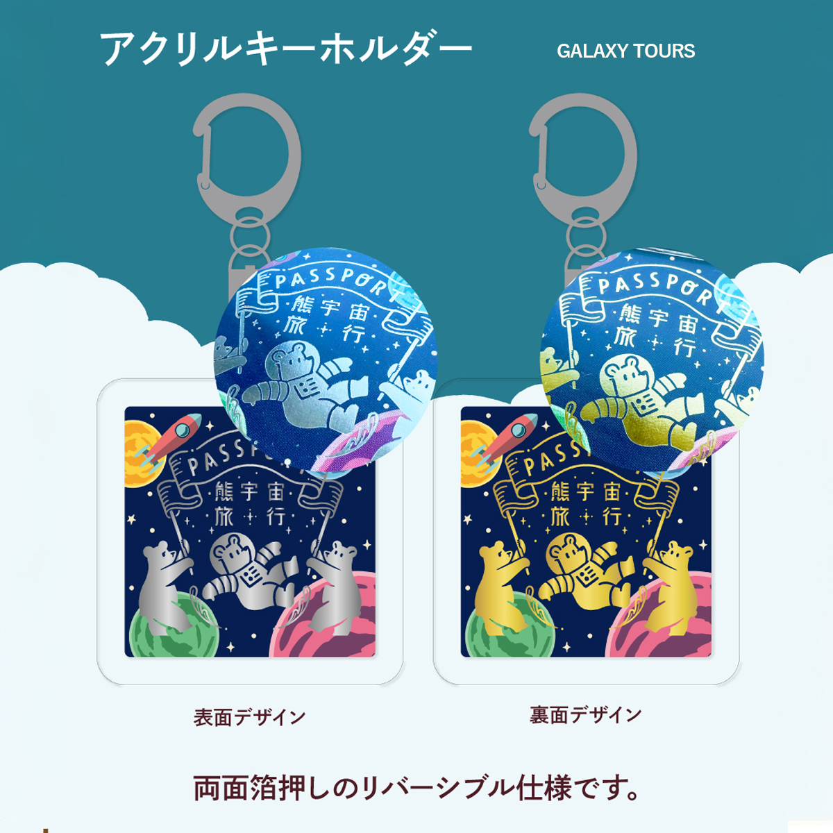 大地をめぐる「EARTH TOURS」、星々へ向かう「GALAXY TOURS」という、2つの異なる世界観を鮮やかに箔押しで彩ります。