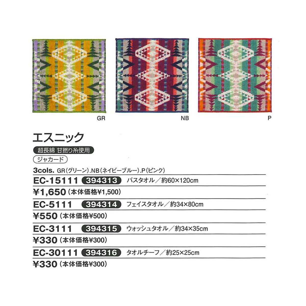 | サイズ | バスタオル:約60×120cm フェイスタオル:約34×80cm ウォッシュタオル:約34×35cm タオルチーフ:約25×25cm |