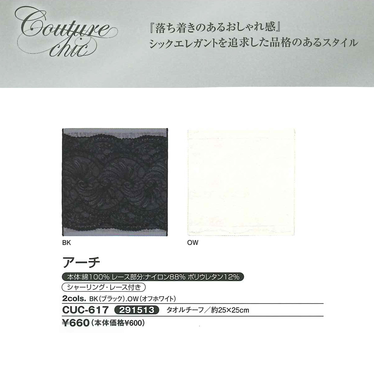 【OCURONE オクローネ】Couture chic アーチ タオルチーフ ブラック オフホワイト