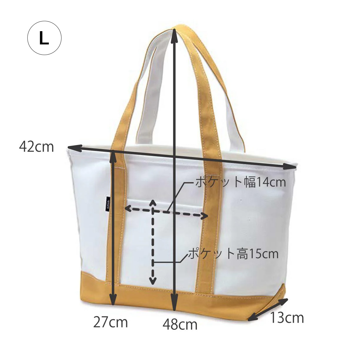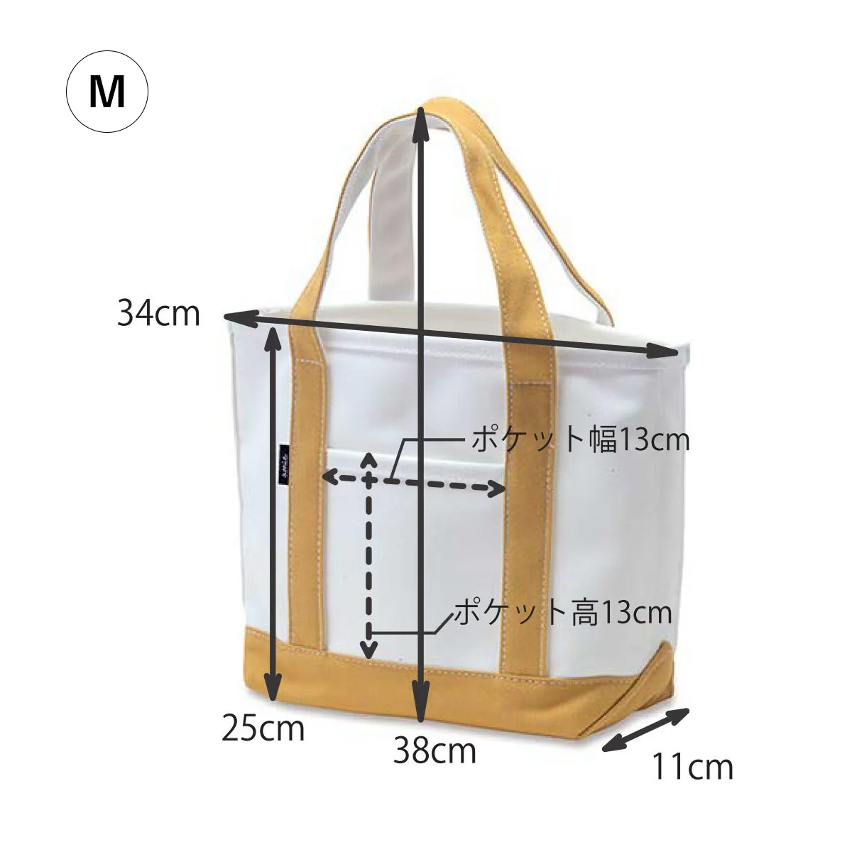 | サイズ | M:W34 D11 H38(25) L:W42 D13 H48(27) |