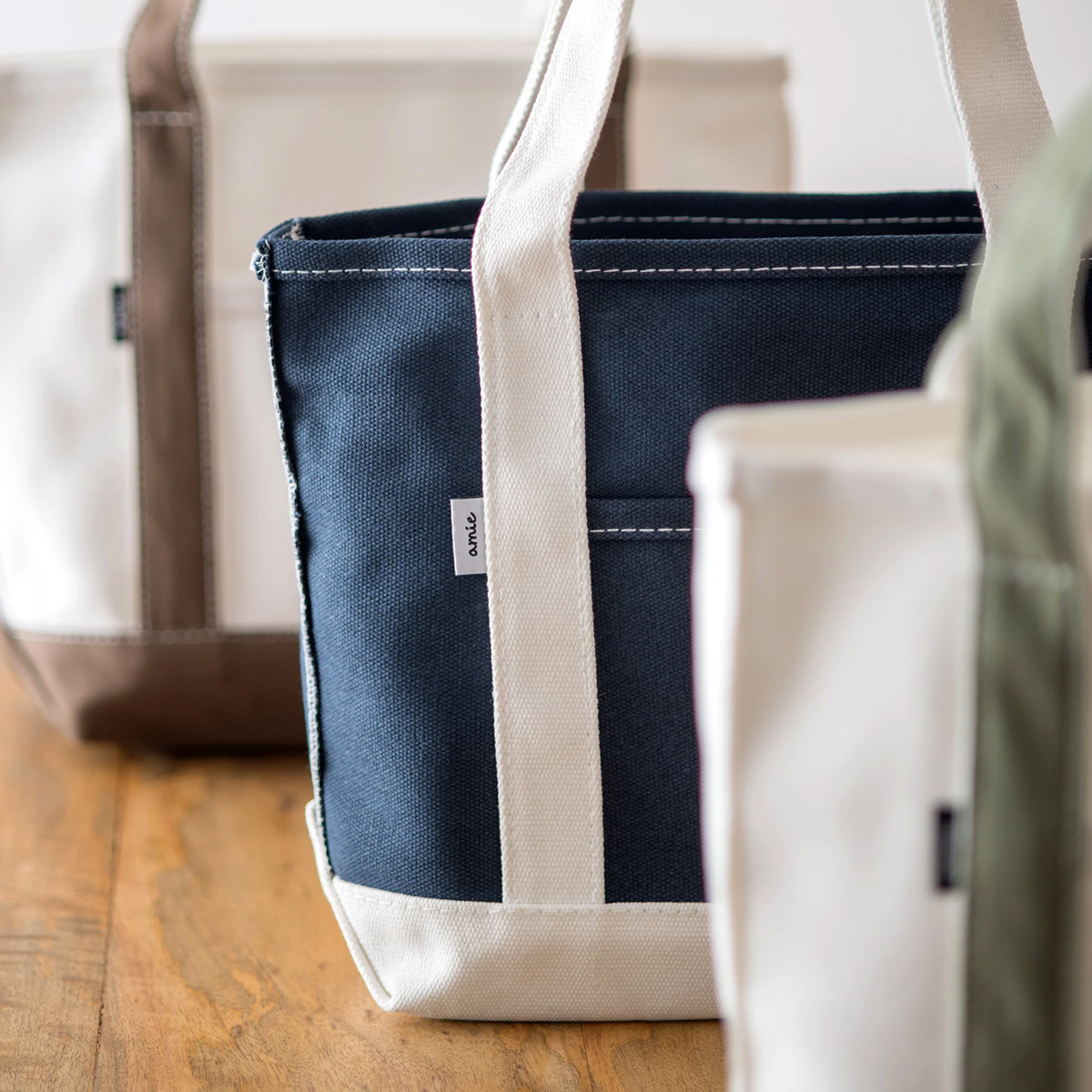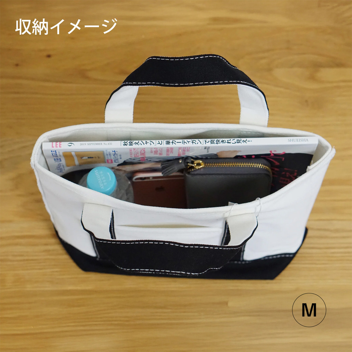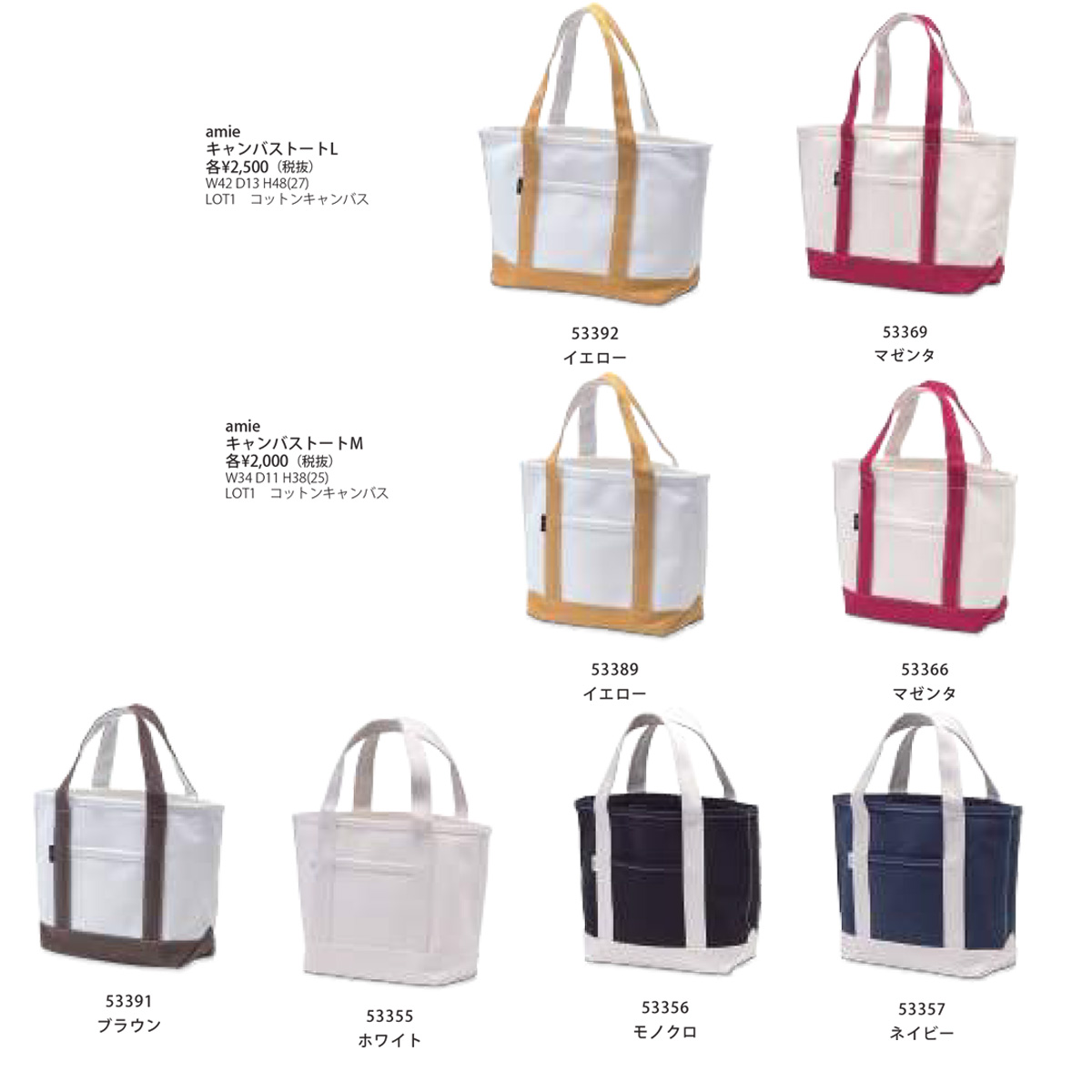 amie キャンバストート M&L ホワイト モノクロ マゼンタ レディース ハンドバッグ