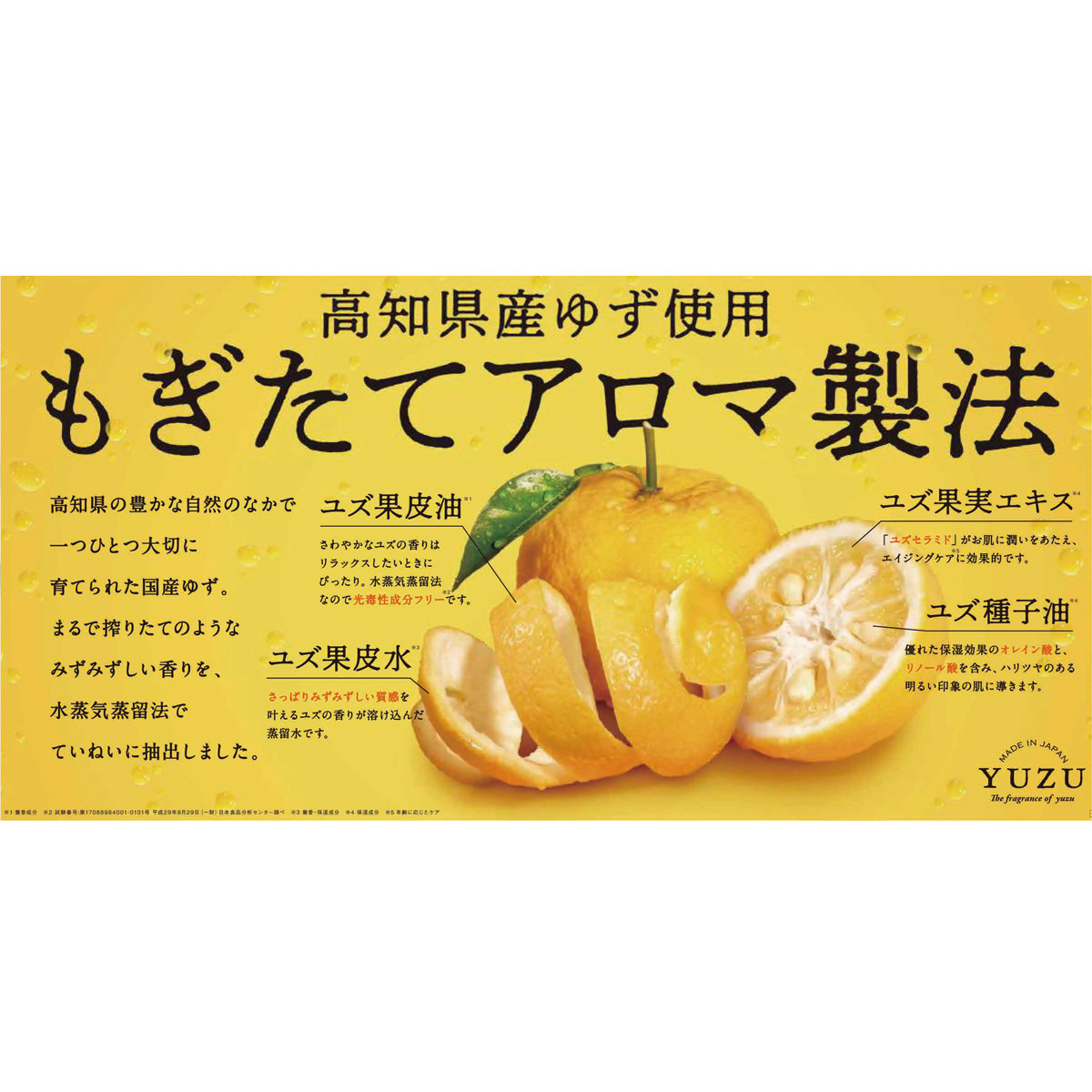 ユズ精油を配合した、やわらかく澄んだ香りも魅力のひとつ。