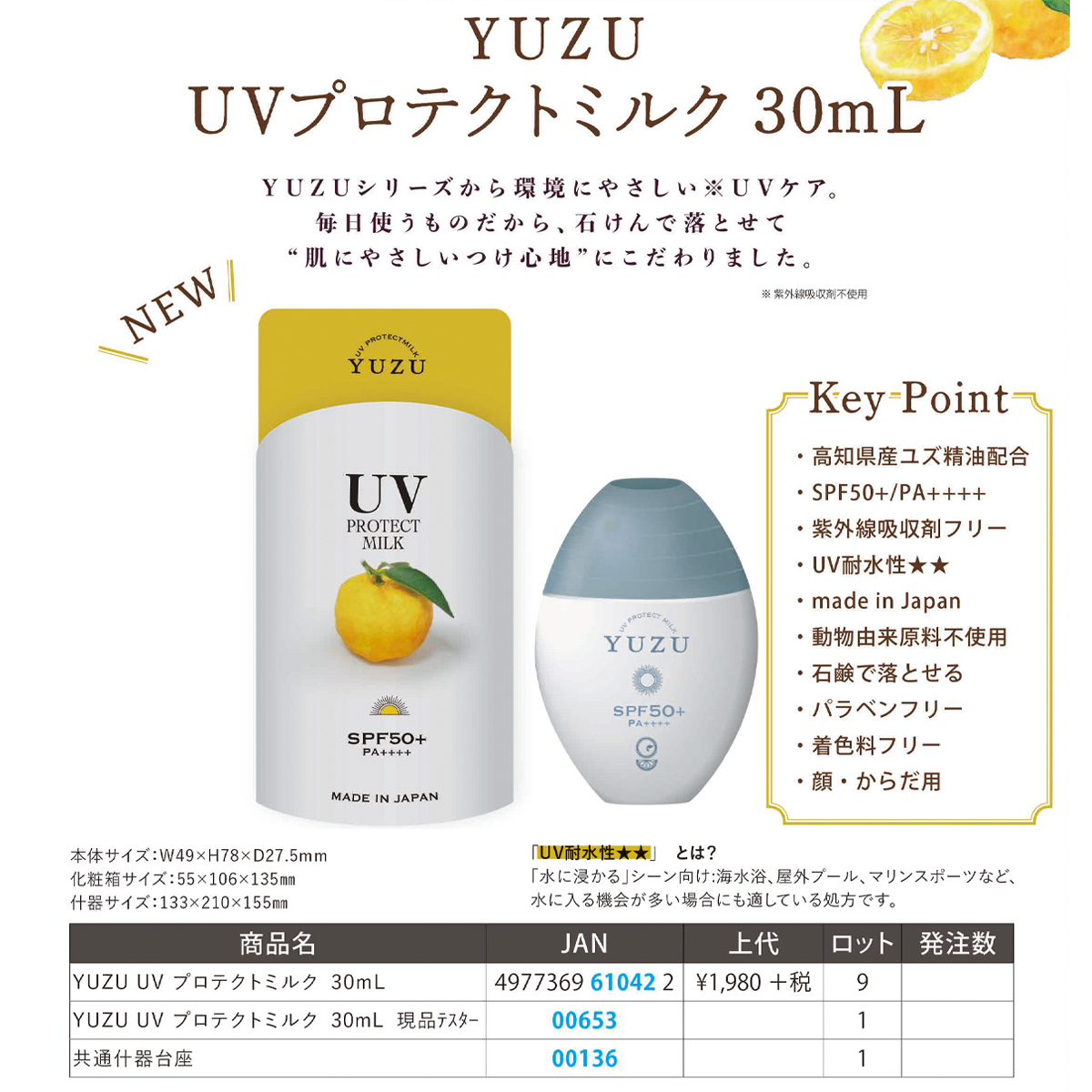 【高知県産YUZUシリーズ】に今度はUVミルクが新登場。
