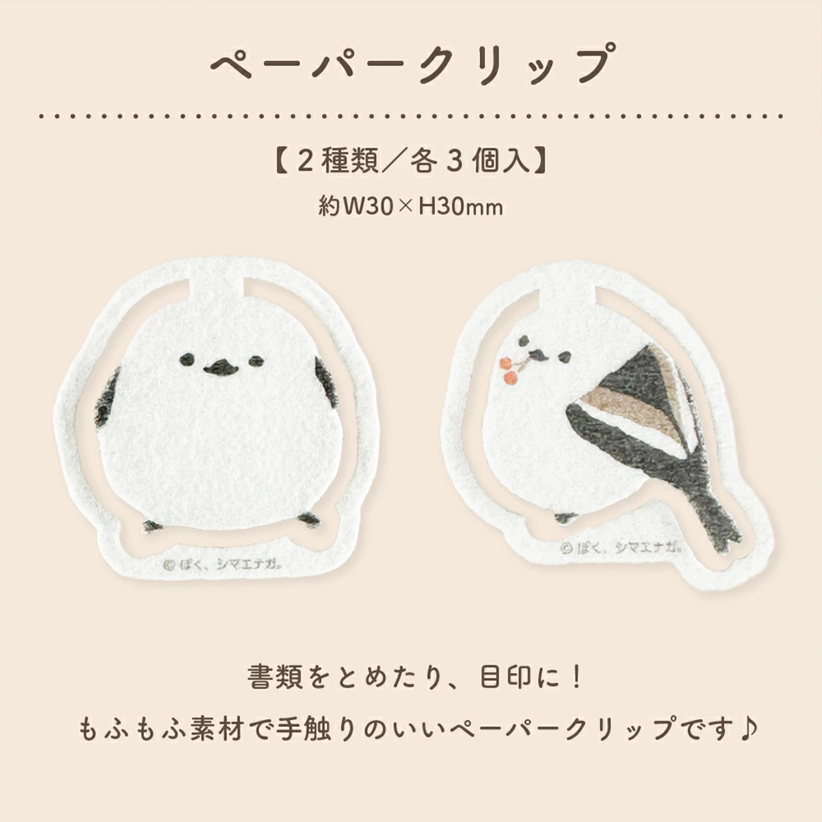 【日本製】ぼく、シマエナガ。 ペーパークリップ