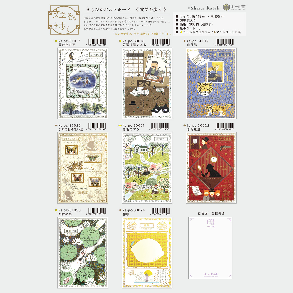 Shinzi Katoh きらぴかポストカード 文学を歩く ゴールドホログラム/マットゴールド箔