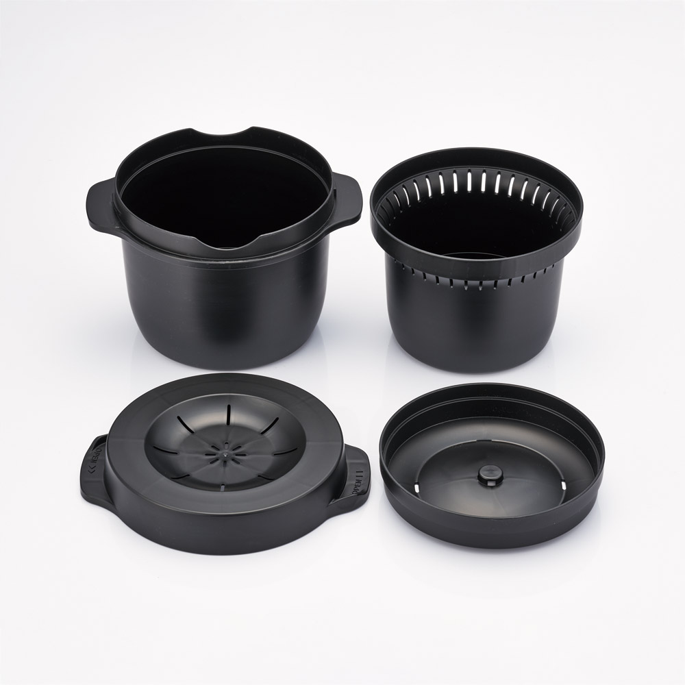 外容器に水を入れ、発生した蒸気が内容器全体を包み込み、ムラなく加熱します。