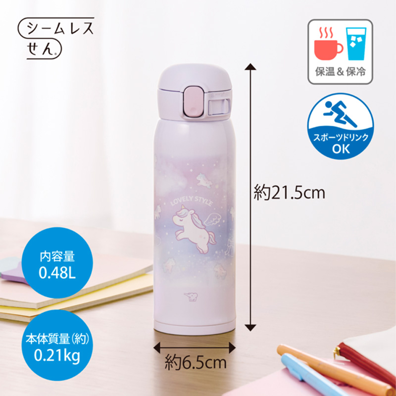 【象印】ステンレスマグ 480ml ワンタッチタイプ キュート 水筒 魔法瓶 保温・保冷 軽量 お手入れ簡単 キッズ 入園・入学