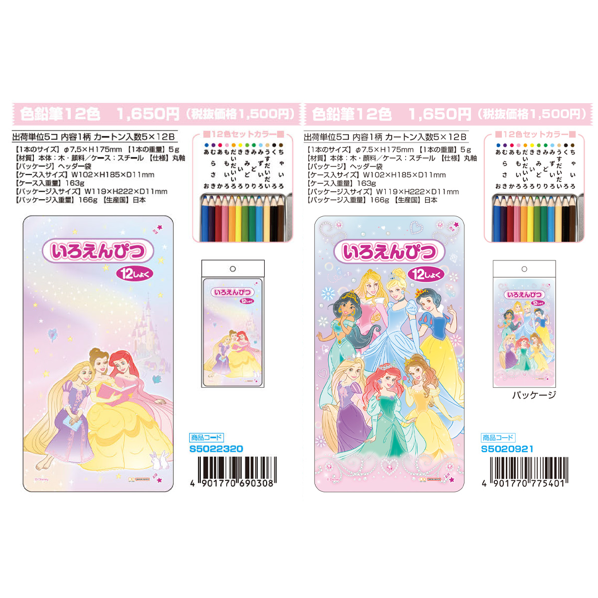 【新学期】色鉛筆12色 ディズニープリンセス