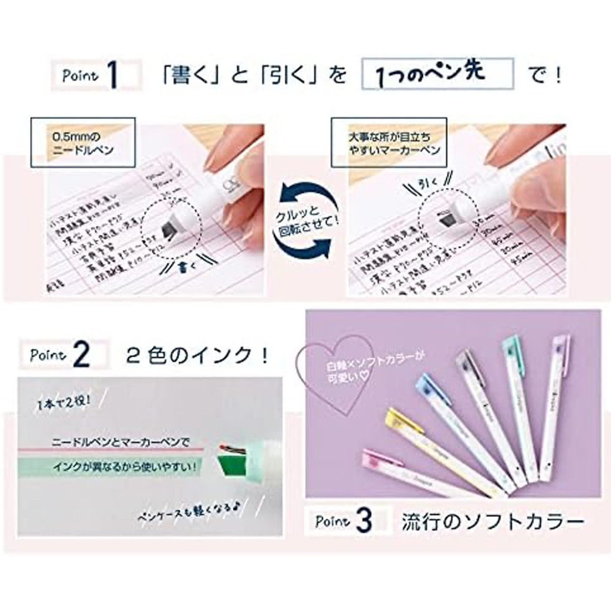 「書く」と「引く」がひとつのペン先になった新発想のペン。