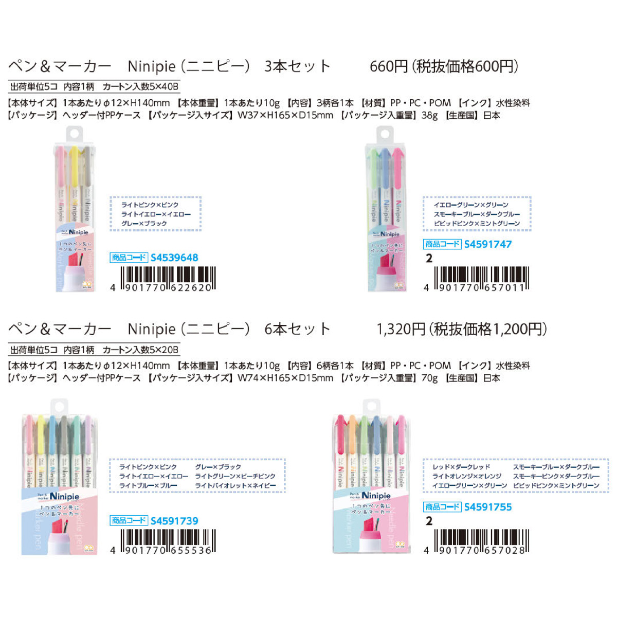 ペン&マーカー Ninipie(ニニピー) 3本セット/6本セット 日本製