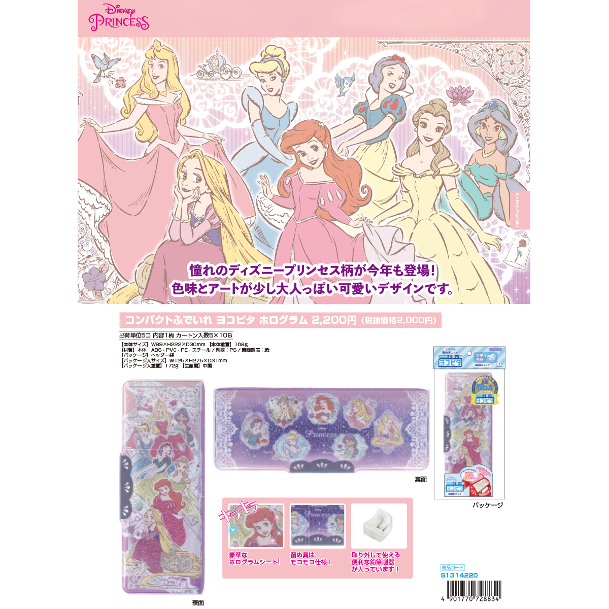 コンパクトふでいれヨコピタ ディズニー 筆箱 ペンケース