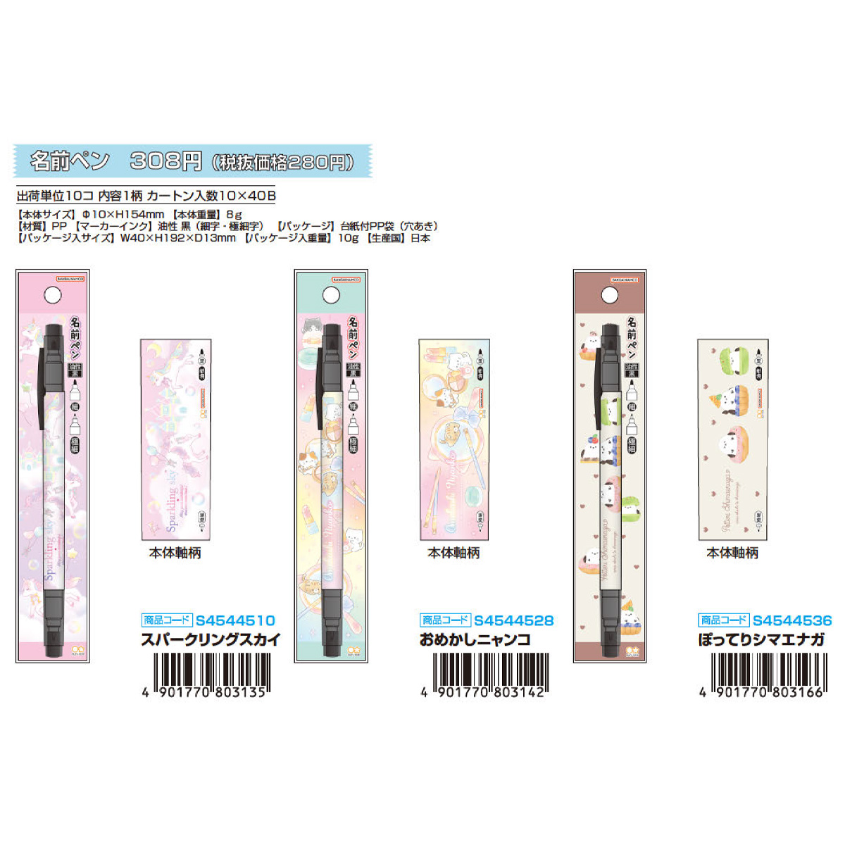 【新学期】名前ペン ファンシー 猫 シマエナガ 日本製