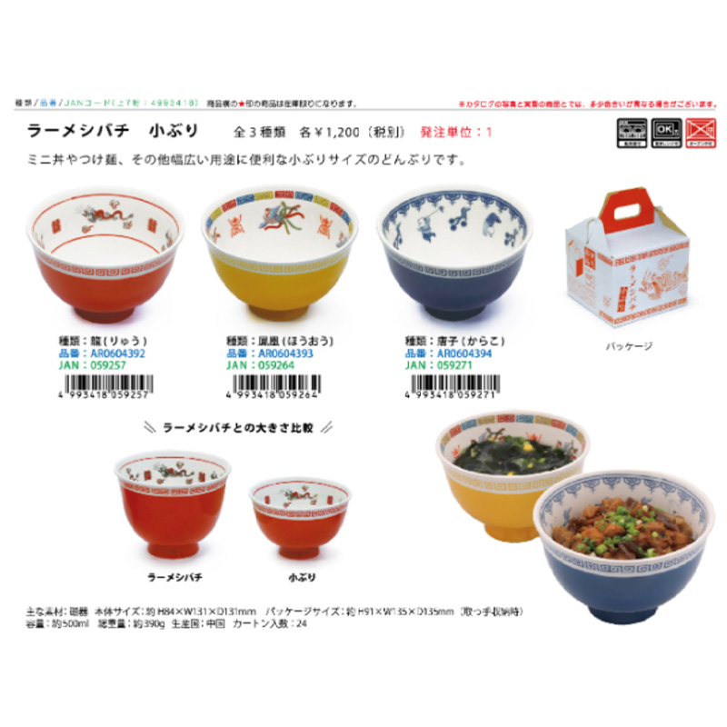 ミニ丼やつけ麺、その他幅広い用途に便利な小ぶりサイズのどんぶりです。