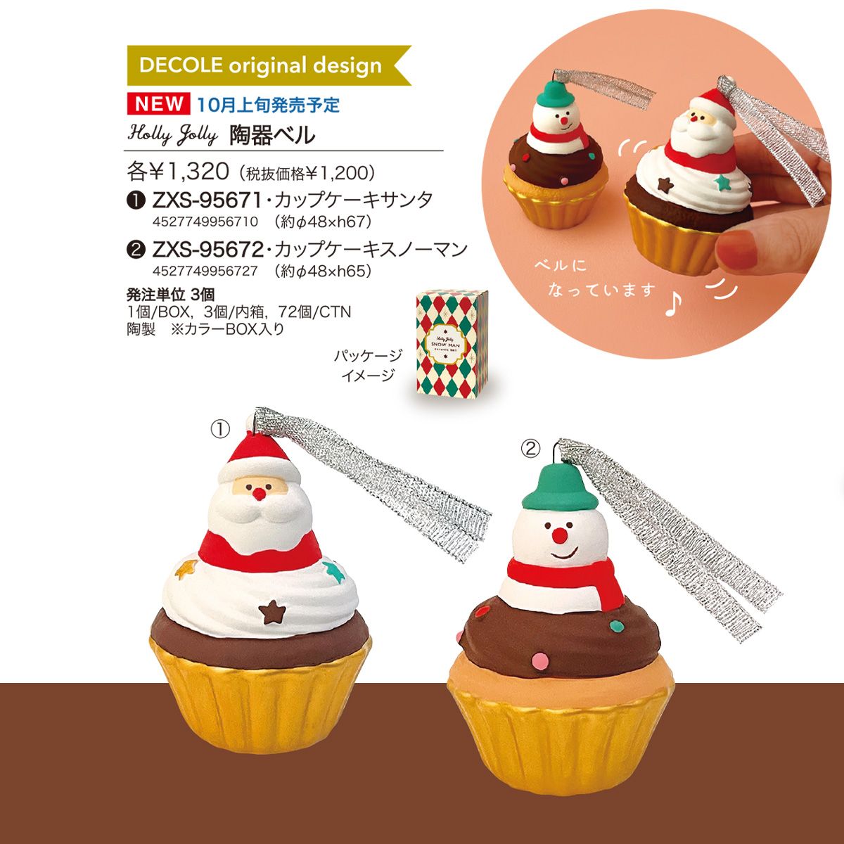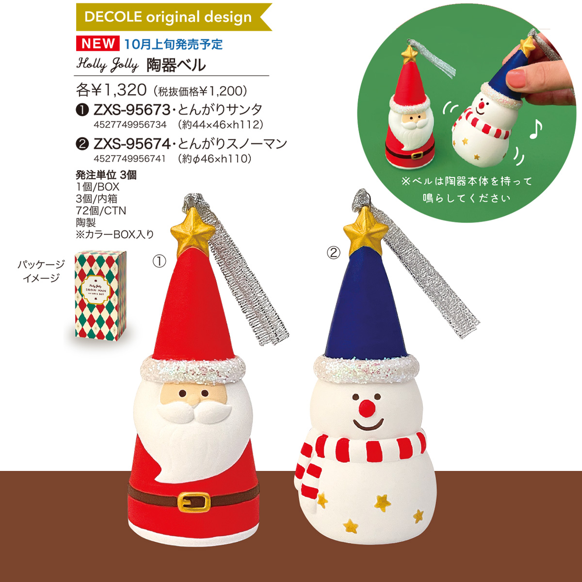 | サイズ | 【ZXS-95671 陶器ベル カップケーキサンタ】 約φ48×h67 本体重量:31g 【ZXS-95672 陶器ベル カップケーキスノーマン】 約φ48×h65 本体重量:31g 【ZXS-95673 陶器ベル とんがりサンタ】 約44×46×h112 本体重量:51g 【ZXS-95674 陶器ベル とんがりスノーマン】 約φ46×h110 本体重量:57g |