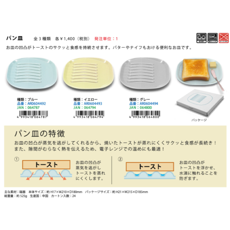 サラエット パン皿 電子レンジ用 ヘルシーなお皿 saraet ブルー/イエロー/グレー