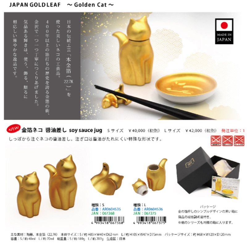 金箔ネコ 醤油差し soy sauce jug S&Lサイズ 日本のお土産 逸品 日本製