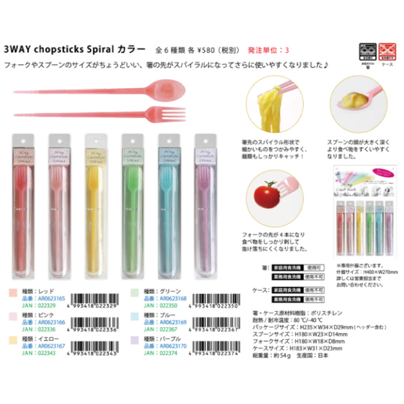 3WAY chopsticks Spiral カラー 箸・スプーン・フォークが1つに! 日本製