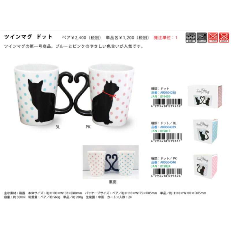 ツインマグ ドット 猫のしっぽ ギフト プレゼント 結婚祝い 結婚記念日 マグカップ