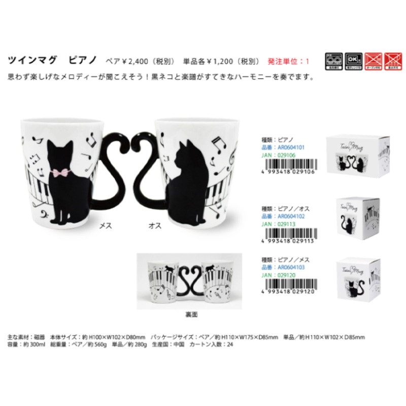 ツインマグ ピアノ 猫のしっぽ ギフト プレゼント 結婚祝い 結婚記念日 ペア マグカップ