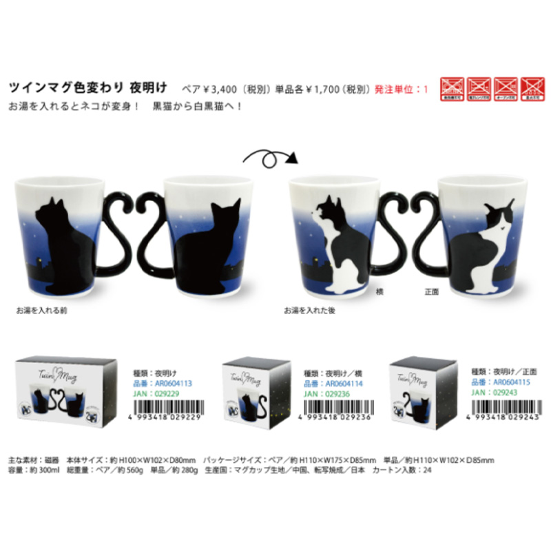 ツインマグ色変わり 夜明け 猫のしっぽ ギフト プレゼント 結婚祝い 結婚記念日 ペア マグカップ