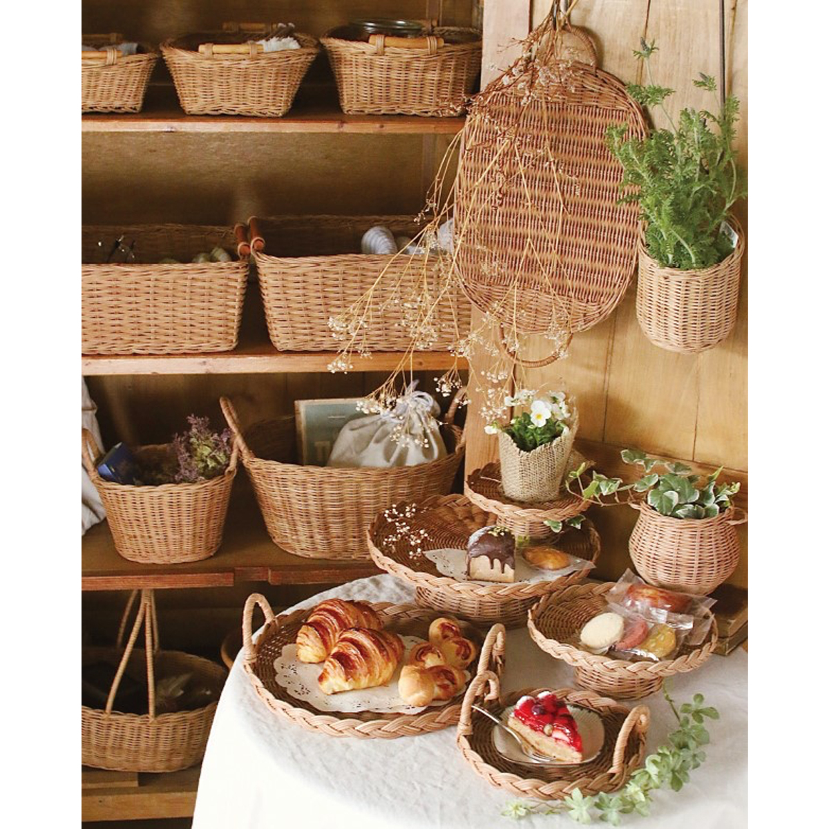 職人の手仕事ならではのやさしい曲線と、通気性・軽さを兼ね備え、収納からディスプレイまで幅広く活躍します。