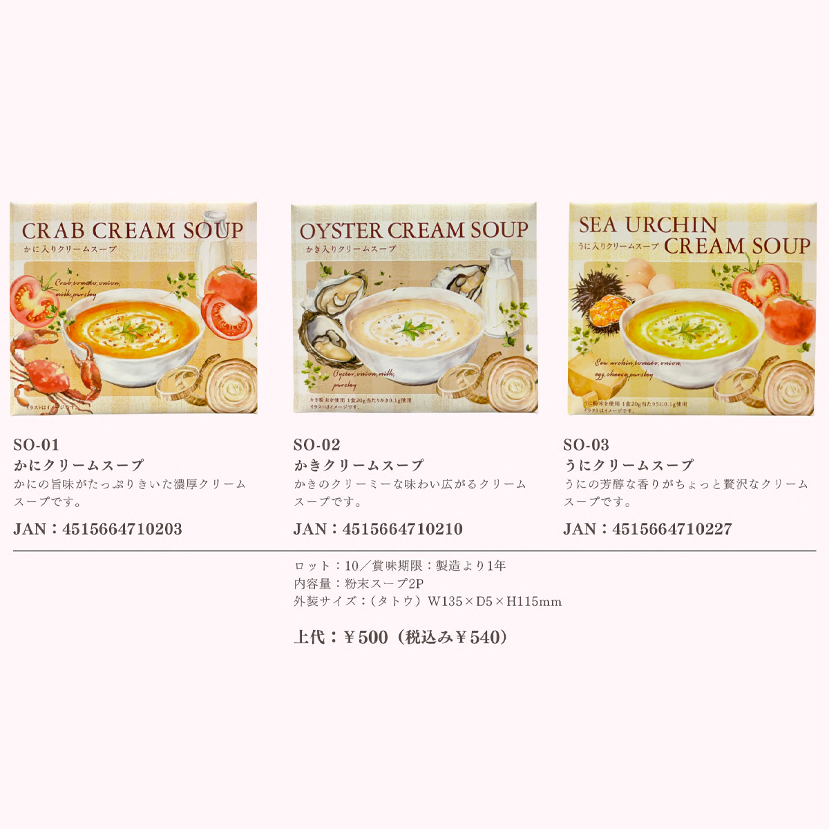 《予約:受注締切4/10(金)〆》クリームスープ かき入り・かに入り・うに入り