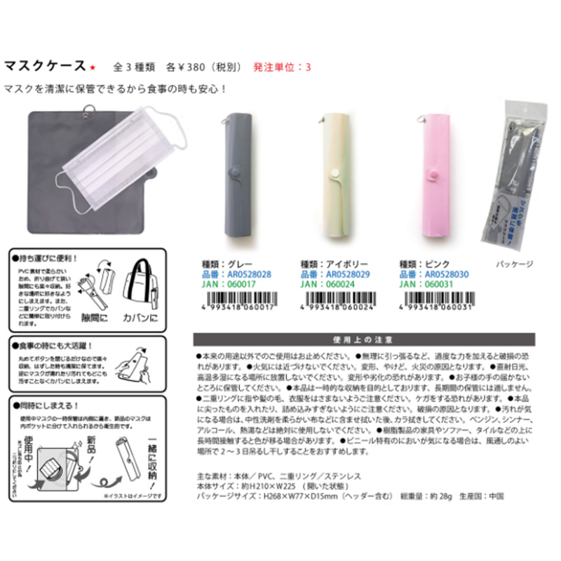 マスクケース マスクを清潔に保管!グレー/アイボリー/ピンク
