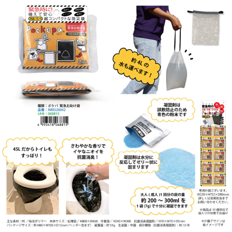 【おすすめ】Pocketpa ポケパ 緊急お助け袋 防災グッズ 簡易トイレ 超コンパクト