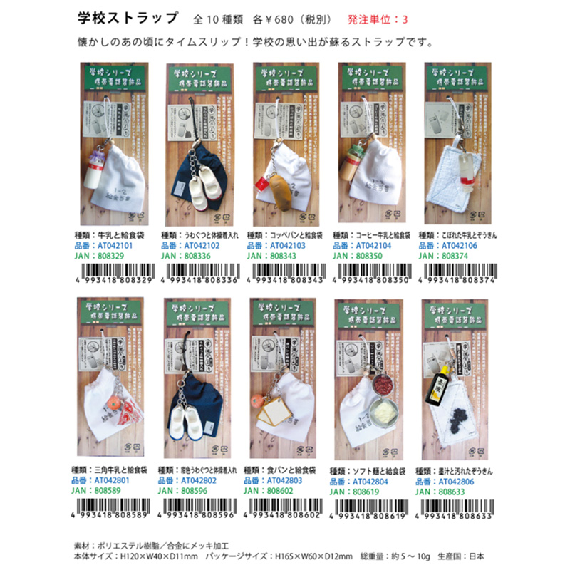 学校ストラップ キーホルダー レトロ雑貨 給食 日本のお土産