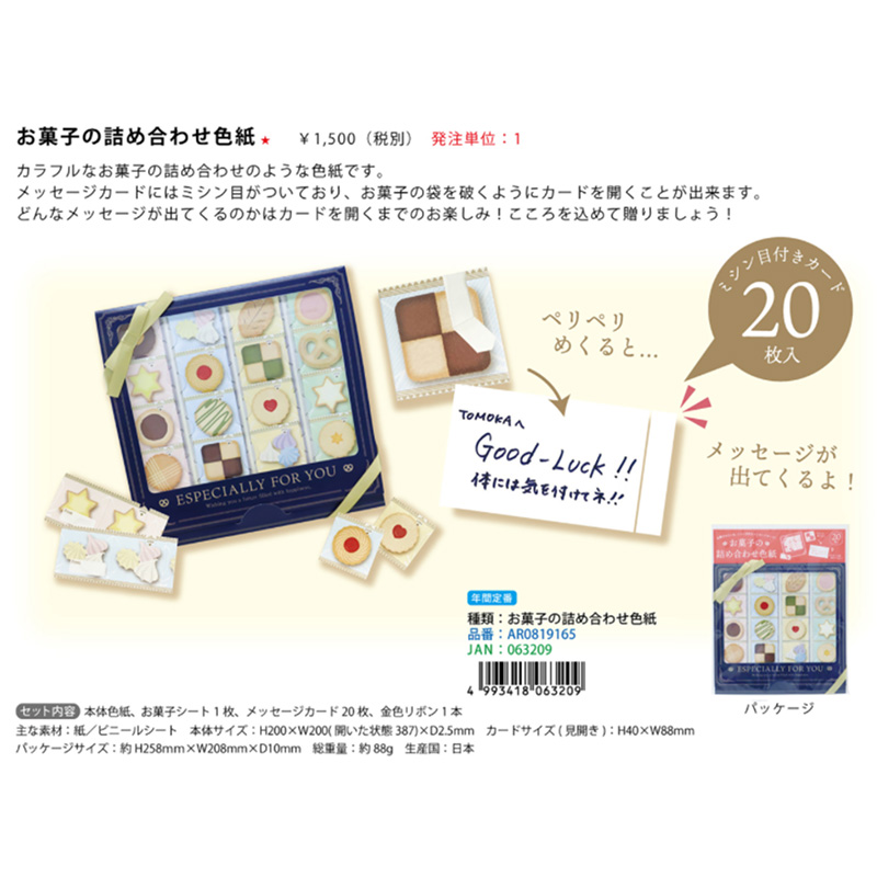 セット内容:本体色紙、お菓子シート1枚、メッセージカード20枚、金色リボン1本