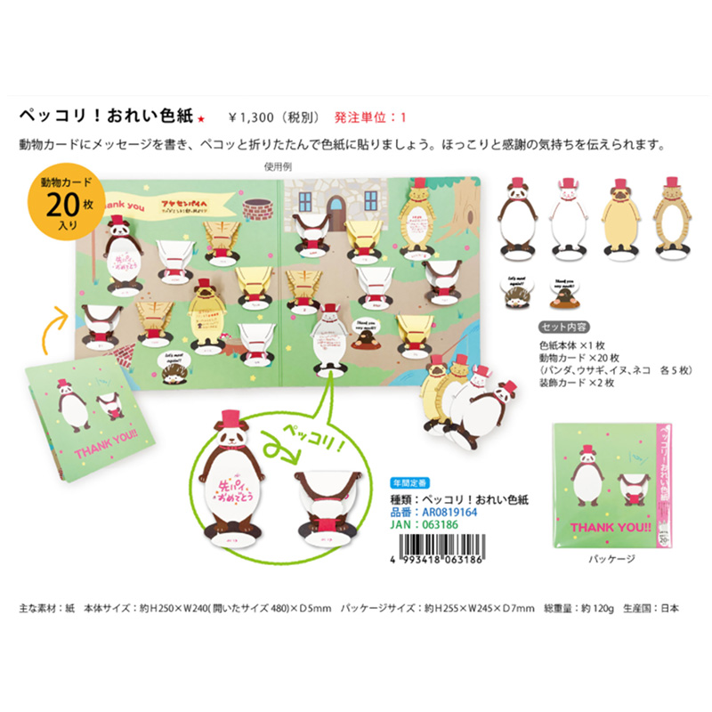 ペッコリ!おれい色紙 寄せ書き 動物 退職 卒業 引っ越し お祝い 学生メッセージグッズ