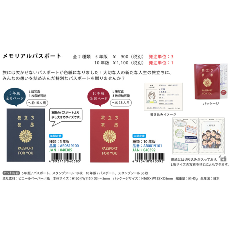 メモリアルパスポート 寄せ書き 写真入れ付き メッセージグッズ