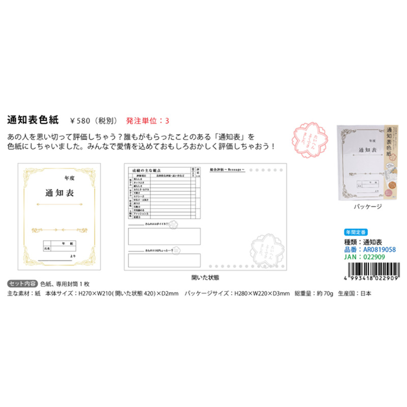 あの人を思い切って評価しちゃう?誰もがもらったことのある「通知表」を色紙にしちゃいました。みんなで愛情を込めておもしろおかしく評価しちゃおう!