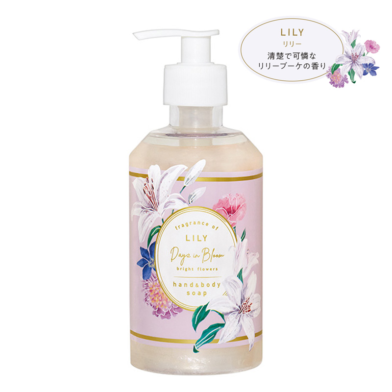 やさしい花のアロマ香る、泡立ちよく洗い上がりしっとりのハンド&ボディーソープ。