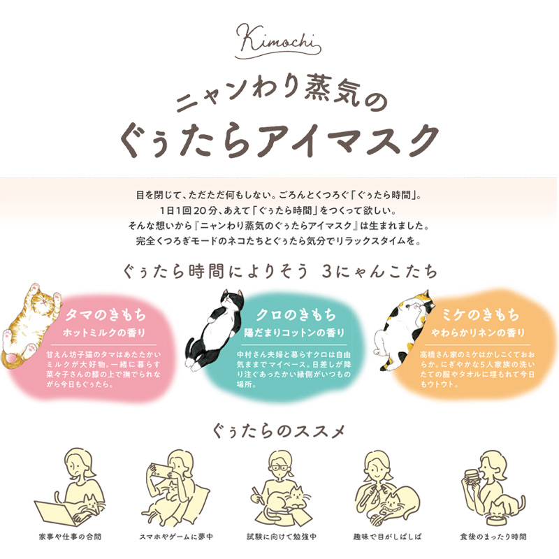 キモチ ニャンわり蒸気のぐぅたらアイマスク アソート3枚入り