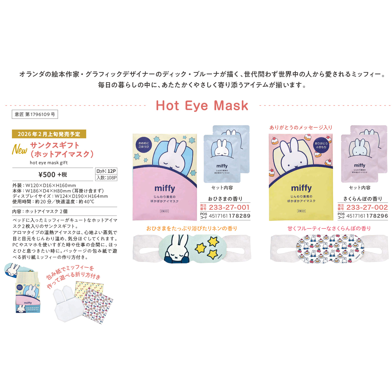 ミッフィー サンクスギフト ホットアイマスク 2枚入り