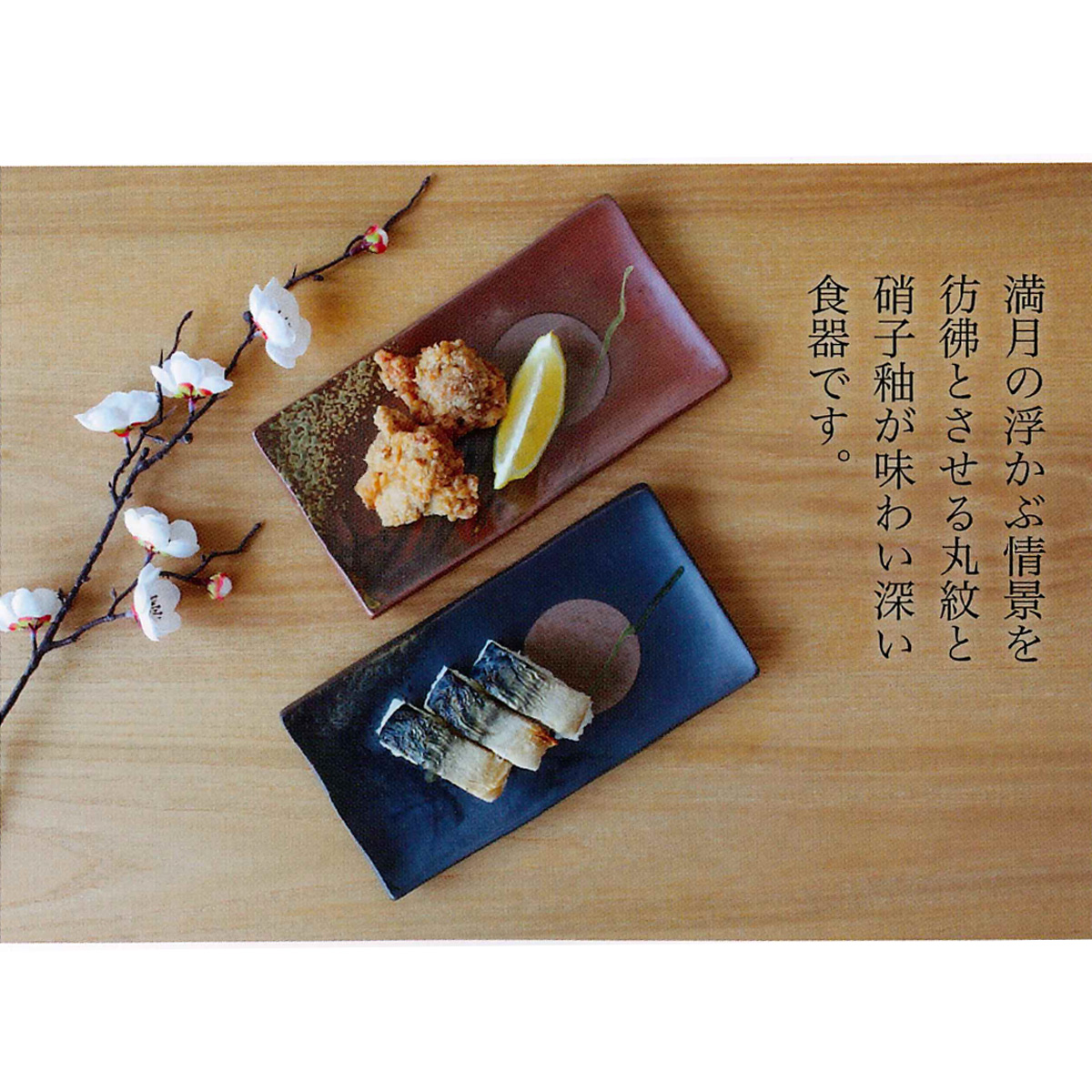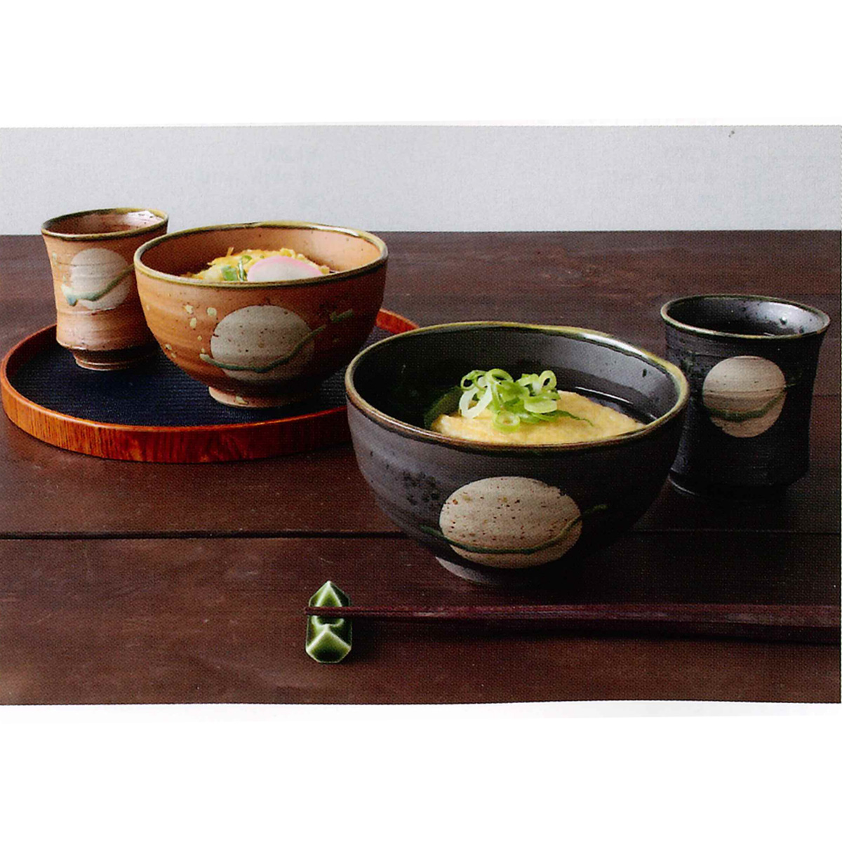満月の浮かぶ情景を彷彿とさせる丸紋とガラス釉が味わい深い食器です。