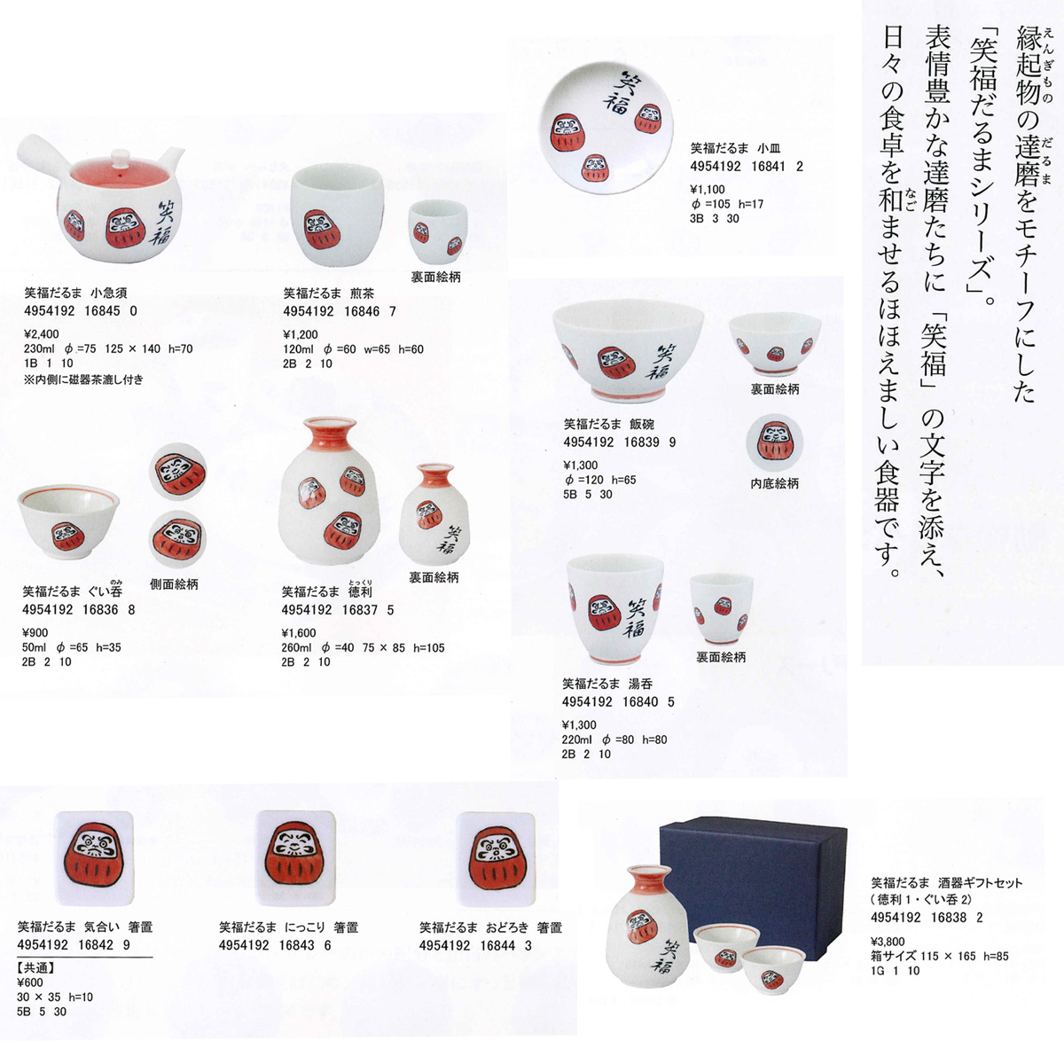 【日本製】笑福だるまシリーズ 飯碗・湯呑・急須・箸置き・皿・ぐい?・徳利